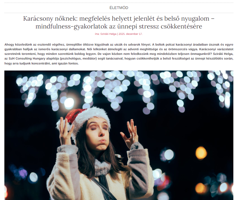 KARÁCSONY NŐKNEK - megfelelés helyett jelenlét és belső nyugalommindfulness-gyakorlatok az ünnepi stressz csökkentésére. Olvasd el a teljes cikket és legyen ez a karácsonyod más..